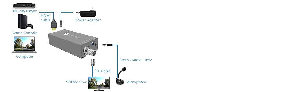 - ✔ Convert HDMI signals to SDI pure digital format in 1080p. Auto format detection for 3G-SDI, HD-SDI and SD-SDI. **NOTE: This is not a bi-directional converter. DO NOT use for SDI ⟶ HDMI conversion